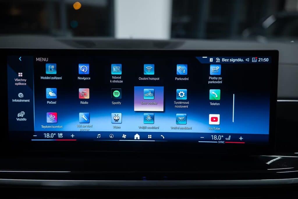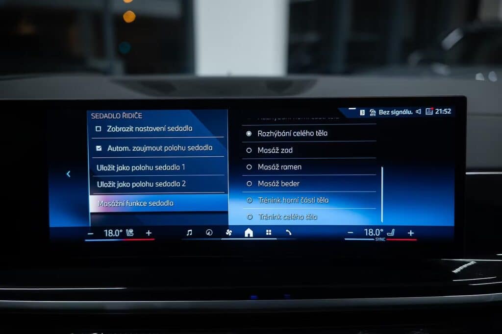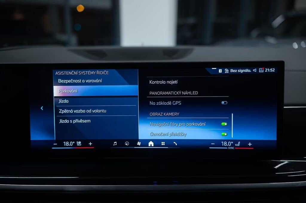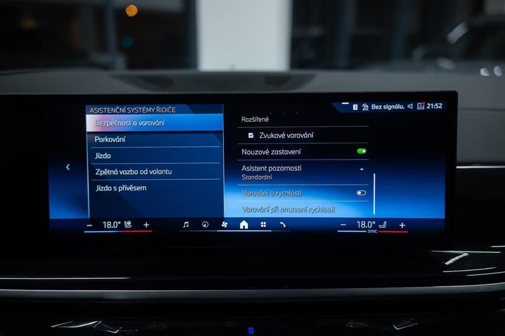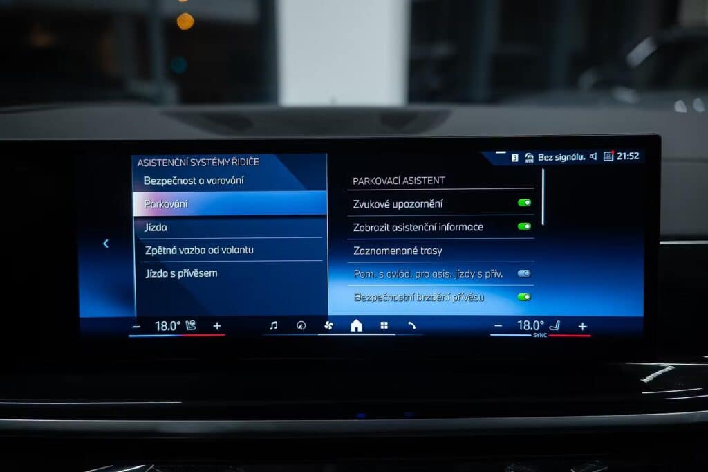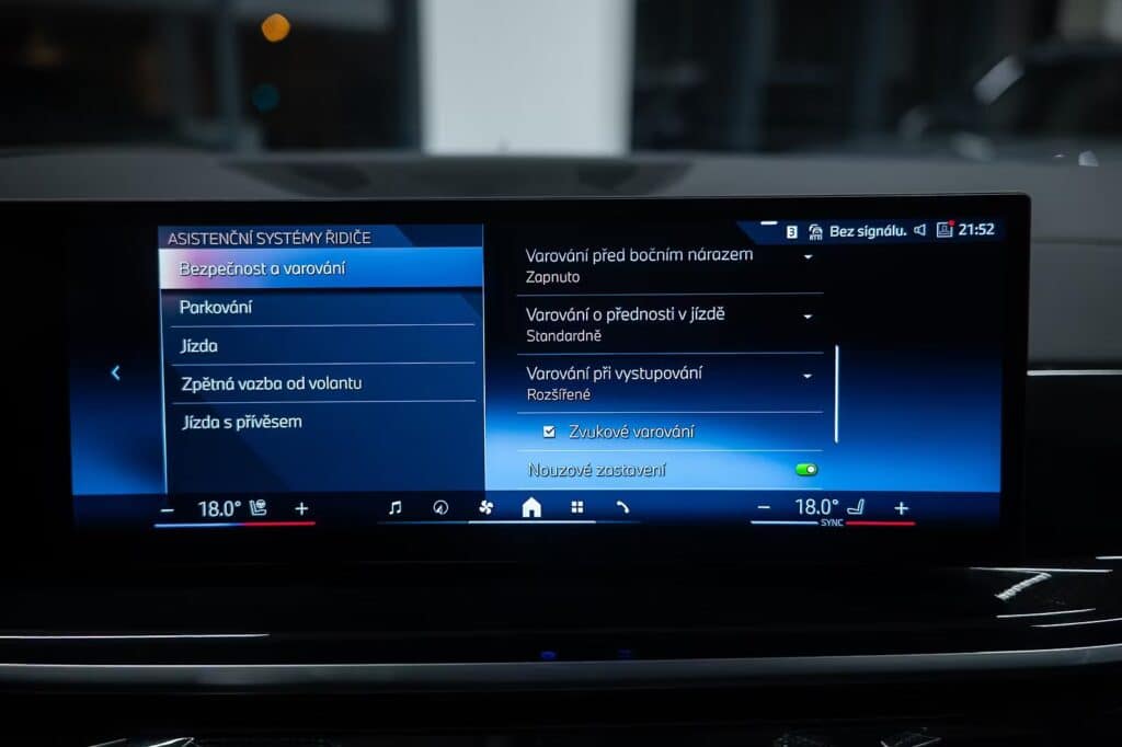6x airbag, airbag řidiče, deaktivace airbagu spolujezdce, 360° monitorovací systém (AVM), ABS, aktivní kapota, asistent jízdy v jízdním pruhu, asistent jízdy v koloně, asistent rozjezdu do kopce (HSA), asistent změny jízdního pruhu, aut. aktivace výstražných světlometů, aut. zabrzdění v kopci, automatické parkování, brzdový asistent, hlídání jízdního pruhu, hlídání mrtvého úhlu, hlídání provozu při couvání (RCTA), nouzové brzdění (PEBS), parkovací asistent, parkovací kamera, parkovací senzory přední, parkovací senzory zadní, protiprokluzový systém kol (ASR), senzor opotřebení brzdových destiček, senzor tlaku v pneumatikách, sledování únavy řidiče, stabilizace podvozku (ESP), ukazatel rychlostního limitu (SLIF), autorádio, bluetooth, digitální příjem rádia (DAB), head-up display, USB, aut. klimatizace, dvouzónová klimatizace, nezávislé topení, nezávislé topení s čas. předehřívačem, bezklíčové odemykání, centrál dálkový, centrální zamykání, el. dovírání dveří, el. víko zavazadlového prostoru, alu kola, ambientní osvětlení interiéru, kožené čalounění, malý kožený paket, Android Auto, Apple CarPlay, bezdrátová nabíječka mobilních telefonů, hands free, satelitní navigace, el. okna, el. přední okna, roletky na zadních oknech, senzor stěračů, tónovaná skla, zatmavená zadní skla, wifi hotspot, záruka, automatické přepínání dálkových světel, denní svícení, LED adaptivní světlomety, LED denní svícení, LED matrixové světlomety, natáčecí světlomety, přední světla LED, senzor světel, zadní světla LED, adaptivní regulace podvozku, el. tažné zařízení, pérování vzduch, regulace tuhosti podvozku, regulace výšky podvozku, tažné zařízení, závěsné zařízení, adaptivní tempomat, aut. převodovka, aut. uzávěrka diferenciálu, pohon 4×4, tempomat, digitální přístrojová deska, digitální přístrojový štít, dotykové ovládání palubního počítače, elektronická ruční brzda, hlasové ovládání palubního počítače, ovládání gesty, palubní počítač, venkovní teploměr, volba jízdního režimu, aut. stavitelný volant při nástupu, multifunkční volant, nastavitelný volant, posilovač řízení, řazení pádly pod volantem, vyhřívaný volant, el. seřiditelná sedadla, isofix, odvětrávaná sedadla, paměť nastavení sedadla řidiče, podélný posuv sedadel, polohovací sedadla, potahy kůže, sedadla s funkcí masáže – přední, sportovní sedadla, vyhřívaná sedadla, vyhřívaná zadní sedadla, výškově nastavitelná sedadla, výškově nastavitelné sedadlo řidiče, výsuvné opěrky hlav, bezklíčové startování, el. startér, start-stop systém, startování tlačítkem, panoramatická střecha, střešní okno, alarm, imobilizér, el. sklopná zrcátka, el. zrcátka, samostmívací zrcátka, vyhřívaná zrcátka