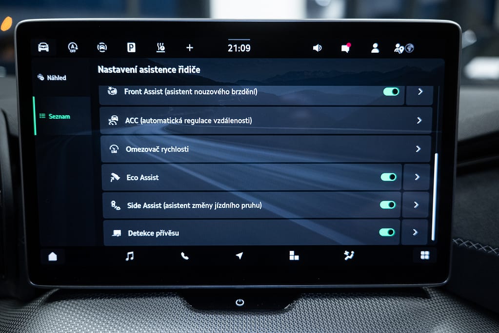 6x airbag, airbag řidiče, deaktivace airbagu spolujezdce, ABS, aktivní kapota, asistent jízdy v jízdním pruhu, asistent rozjezdu do kopce (HSA), asistent změny jízdního pruhu, aut. aktivace výstražných světlometů, aut. zabrzdění v kopci, brzdový asistent, hlídání jízdního pruhu, hlídání mrtvého úhlu, hlídání provozu při couvání (RCTA), nouzové brzdění (PEBS), parkovací asistent, parkovací kamera, parkovací senzory přední, parkovací senzory zadní, protiprokluzový systém kol (ASR), regulace rychlosti při jízdě ze svahu, senzor opotřebení brzdových destiček, senzor tlaku v pneumatikách, sledování únavy řidiče, stabilizace podvozku (ESP), ukazatel rychlostního limitu (SLIF), autorádio, bluetooth, digitální příjem rádia (DAB), head-up display, USB, aut. klimatizace, nezávislé topení, třízónová klimatizace, bezklíčové odemykání, centrál dálkový, centrální zamykání, el. víko zavazadlového prostoru, alu kola, ambientní osvětlení interiéru, kožené čalounění, malý kožený paket, Android Auto, Apple CarPlay, bezdrátová nabíječka mobilních telefonů, hands free, satelitní navigace, el. okna, el. přední okna, senzor stěračů, tónovaná skla, vyhřívané přední sklo, zadní stěrač, zatmavená zadní skla, záruka, automatické přepínání dálkových světel, denní svícení, LED denní svícení, natáčecí světlomety, přední světla LED, senzor světel, zadní světla LED, el. tažné zařízení, tažné zařízení, závěsné zařízení, 7 rychlostních stupňů, adaptivní tempomat, aut. převodovka, pohon 4×4, tempomat, digitální přístrojová deska, digitální přístrojový štít, dotykové ovládání palubního počítače, elektronická ruční brzda, hlasové ovládání palubního počítače, palubní počítač, venkovní teploměr, volba jízdního režimu, multifunkční volant, nastavitelný volant, posilovač řízení, řazení pádly pod volantem, vyhřívaný volant, dělená zadní sedadla, el. seřiditelná sedadla, isofix, paměť nastavení sedadla řidiče, podélný posuv sedadel, polohovací sedadla, potahy kůže, vyhřívaná sedadla, vyhřívaná zadní sedadla, výškově nastavitelná sedadla, výškově nastavitelné sedadlo řidiče, výsuvné opěrky hlav, zadní loketní opěrka, bezklíčové startování, el. startér, start-stop systém, startování tlačítkem, alarm, imobilizér, zaslepení zámků, el. sklopná zrcátka, el. zrcátka, samostmívací zrcátka, vyhřívaná zrcátka